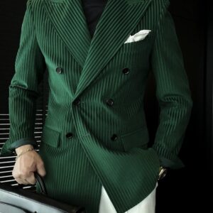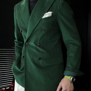 / Double-breasted gun-barred collar vertical striped velvet suit jacket