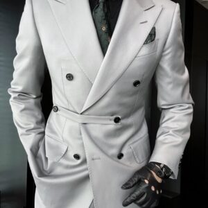 西装Gun barge collar double breasted matte gray cloth edge handmade suit set