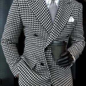 Gun barge collar double breasted matte gray cloth edge handmade suit set