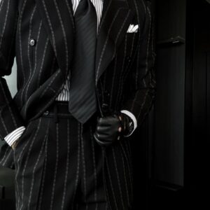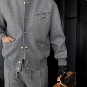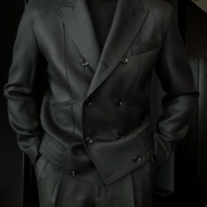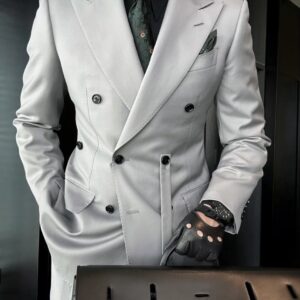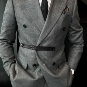 Gun barge collar double breasted matte gray cloth edge handmade suit set